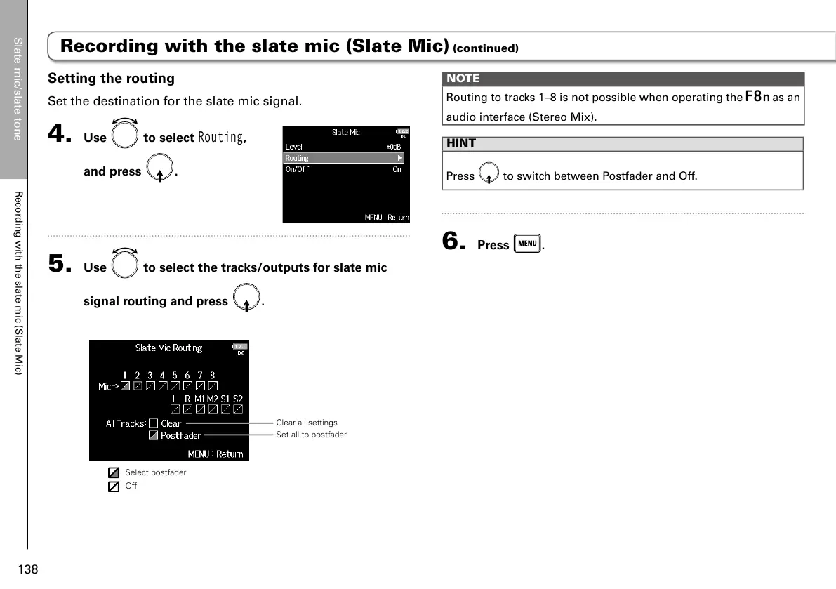 5. Use to select the tracks/outputs for slate mic