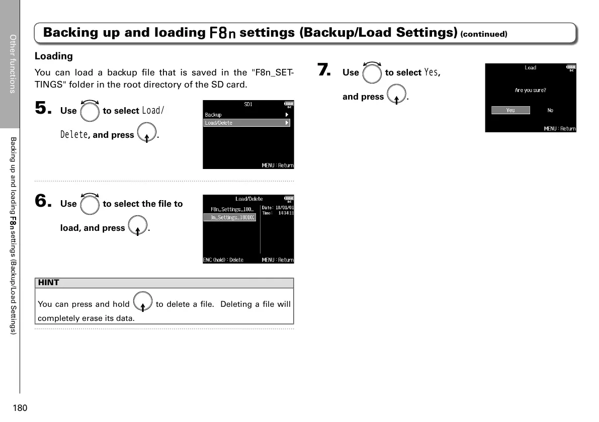 Backing up and loading settings (Backup/Load Settings) (continued)