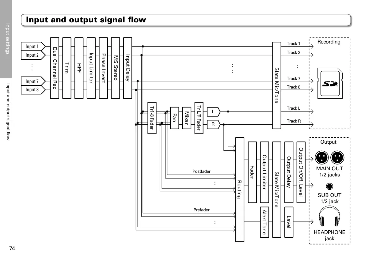 Zoom F8n - Input Settings; Input and Output Signal Flow