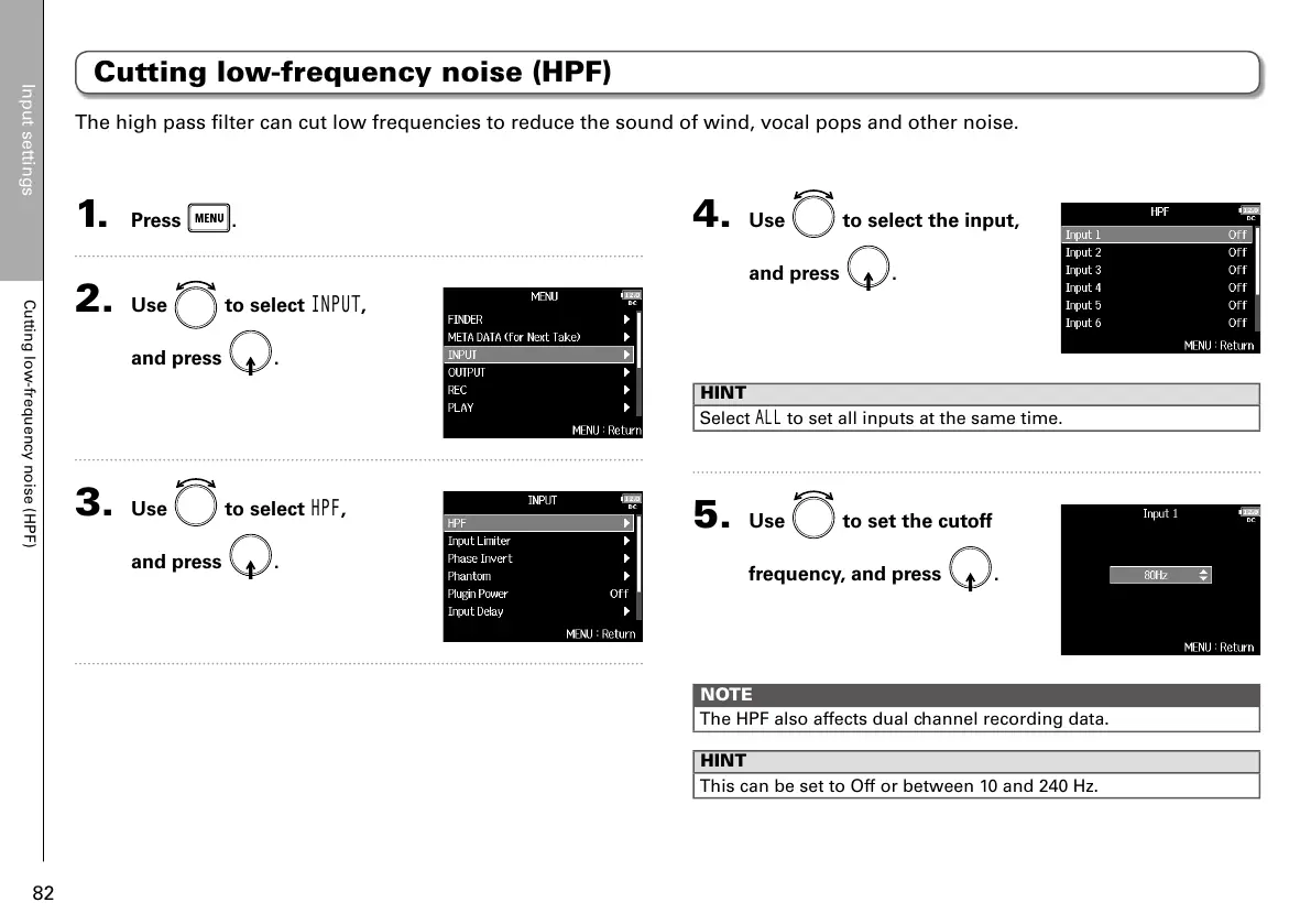 The high pass filter can cut low frequencies to reduce the sound of wind, vocal pops and other noise.
