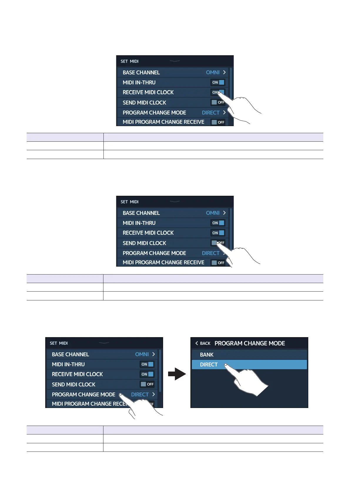 Touch the SEND MIDI CLOCK switch to set it to ON/OFF.