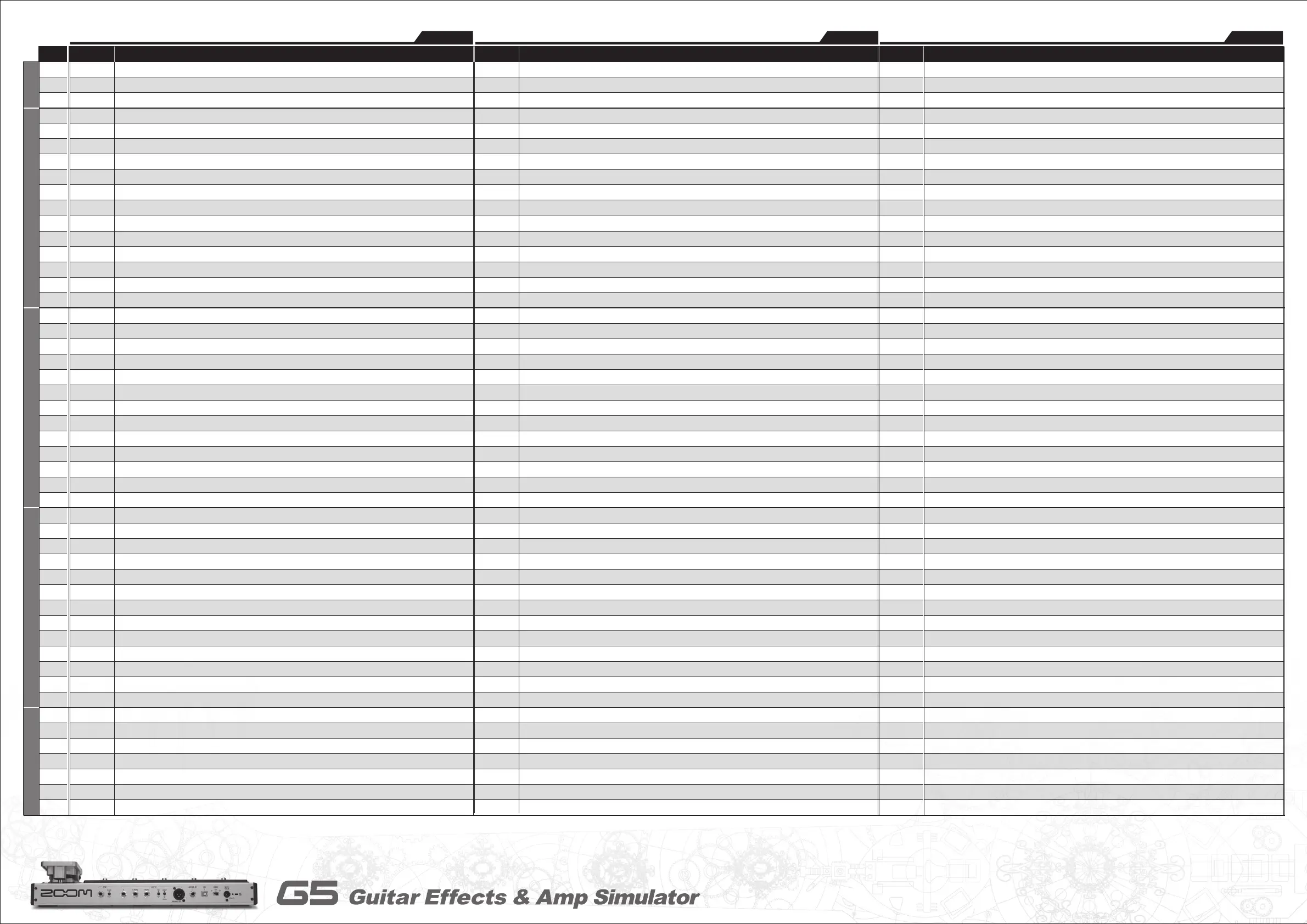Manufacturer names and product names mentioned in this patch list are trademarks or registered trademarks of their respective owners and do not indicate any affiliation with ZOOM CORPORATION.