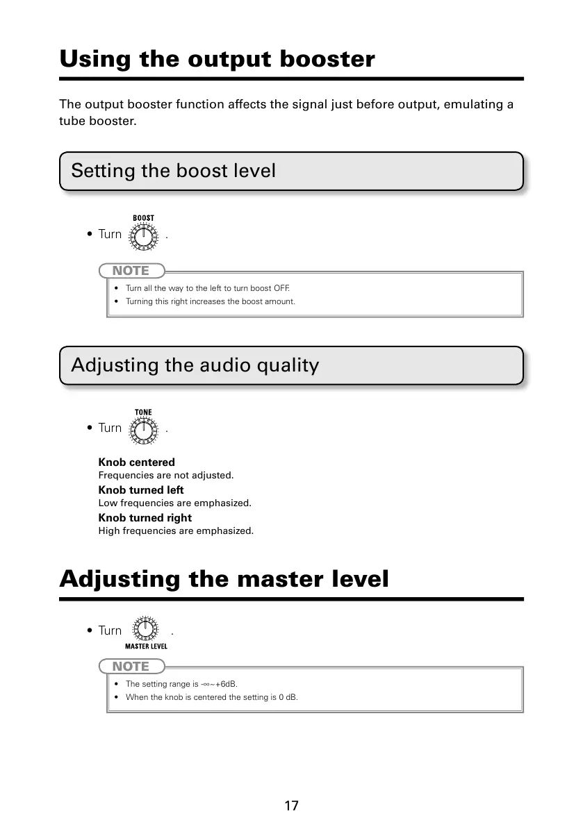 The output booster function affects the signal just before output, emulating a