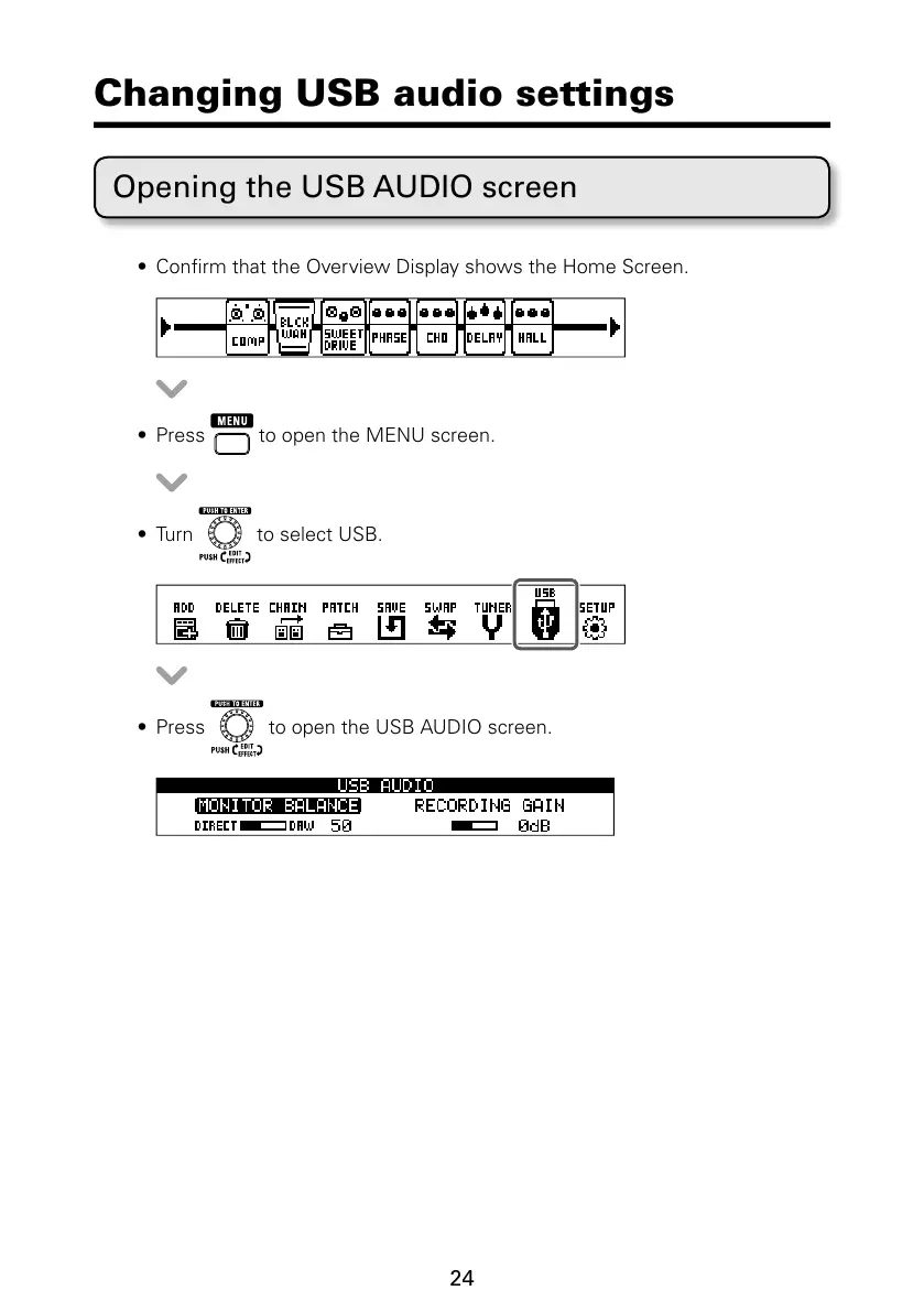 Zoom G5n - Changing USB Audio Settings; Accessing USB AUDIO Screen