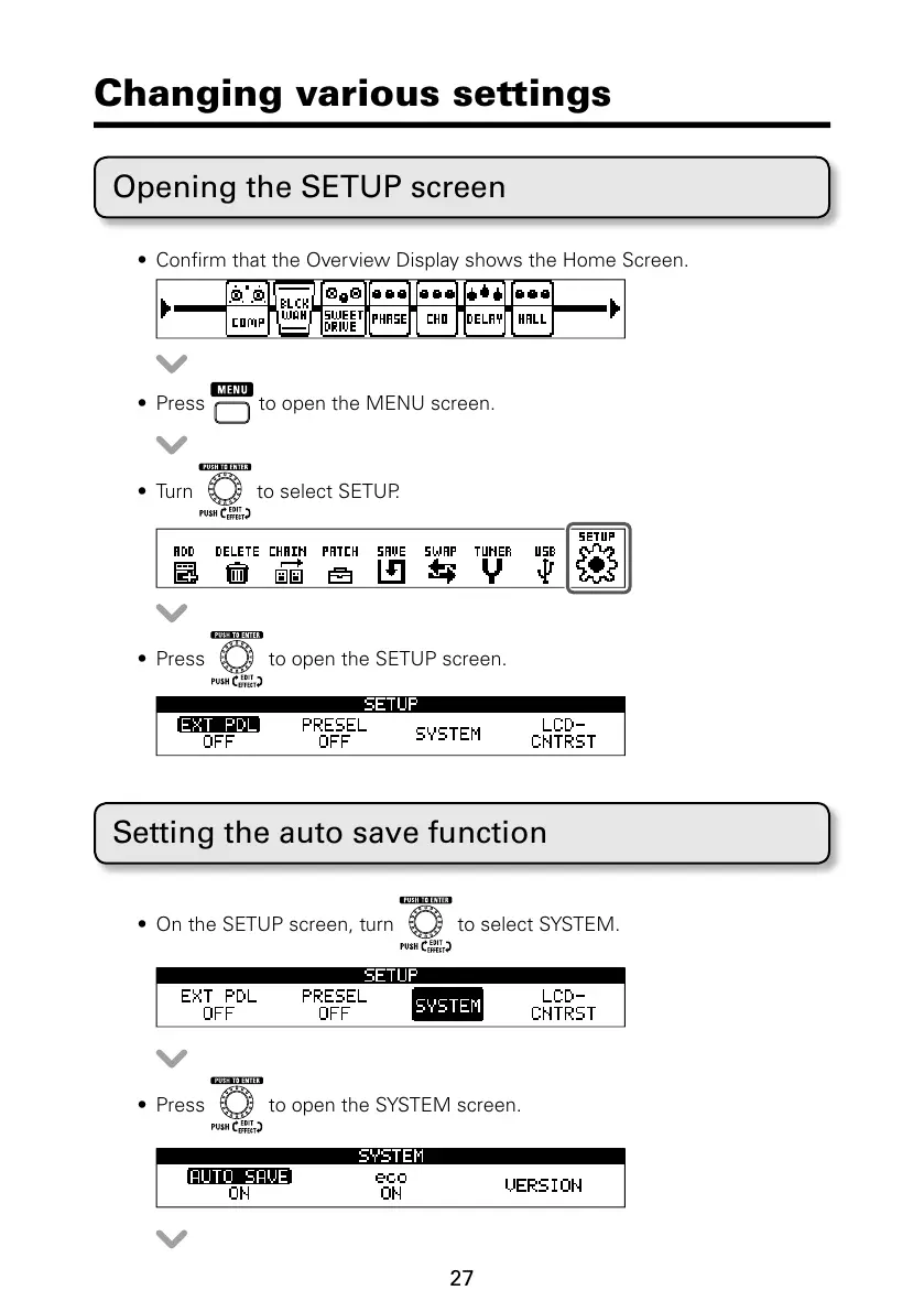 Opening the SETUP screen