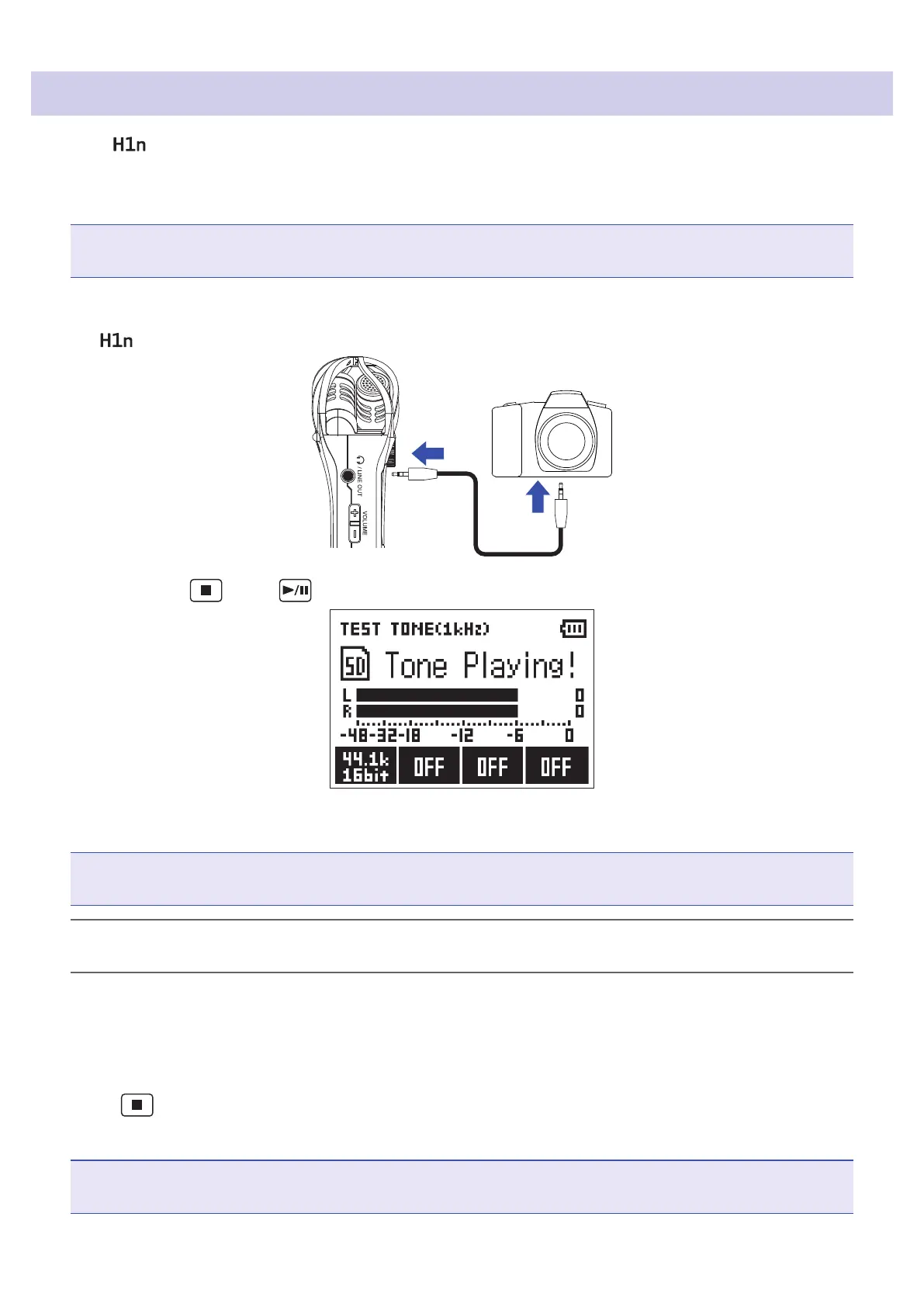 When the is connected to a digital SLR camera or other external device, a test tone can be played to match