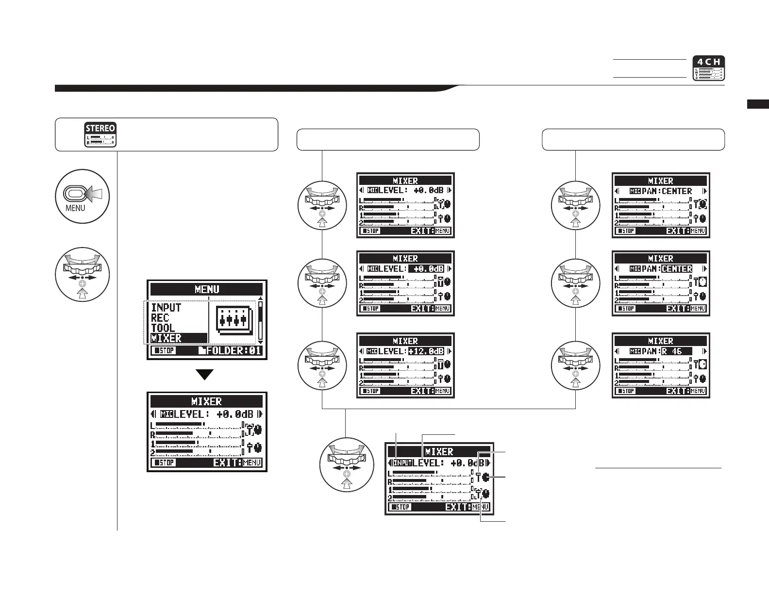 LEVEL to MIC PAN to INPUT