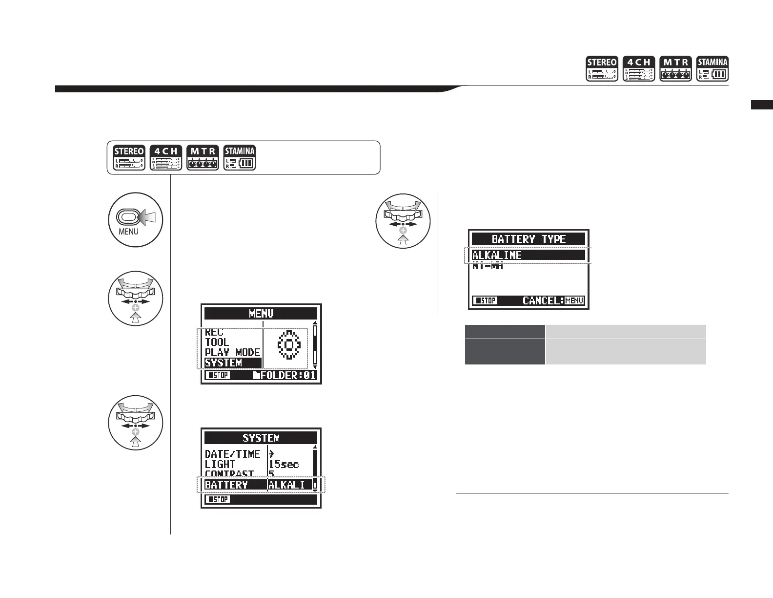 By setting the battery type, the H4n Pro can accurately display the remaining battery life.