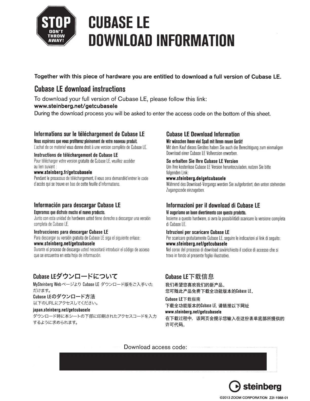 ©2013 ZOOM CORPORATION Z21-1988-01