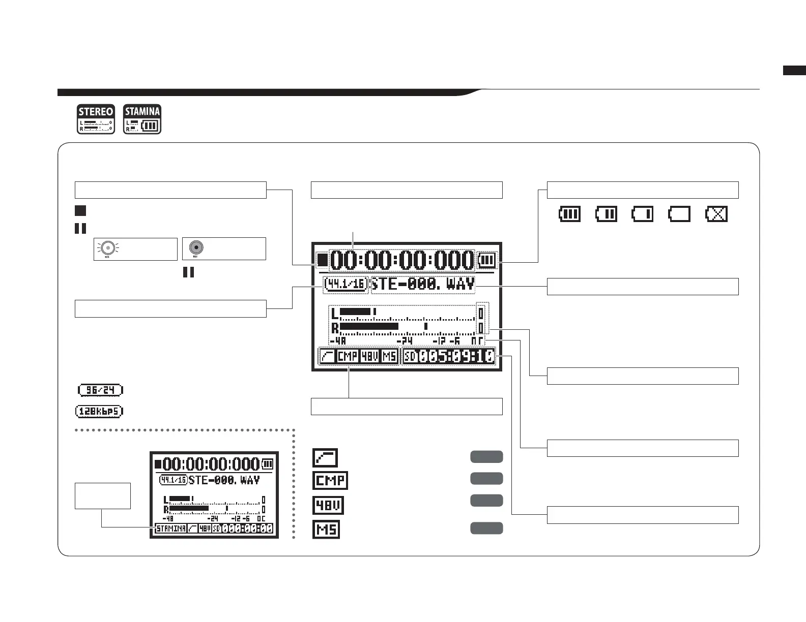Elapsed recording or playback time