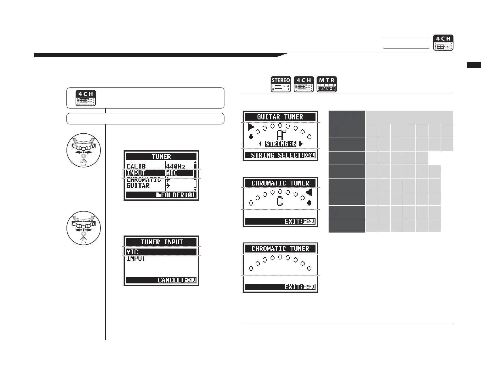 In 4CH mode you can select the input source for the tuner.
