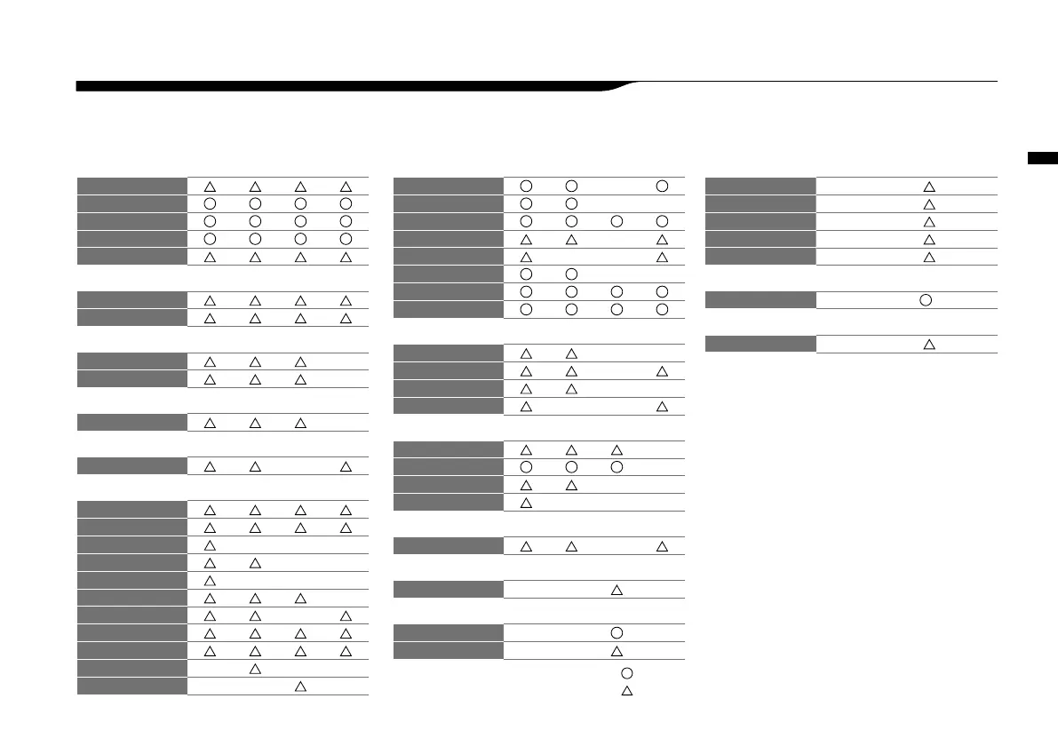 Available setting menu list by each mode