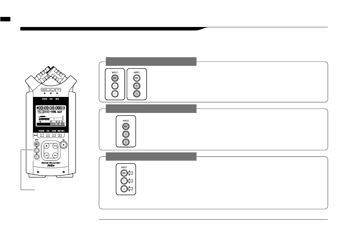 When you switch to 4CH, H4n will receive 2- system stereo inputs from [MIC] and [1] [2]
