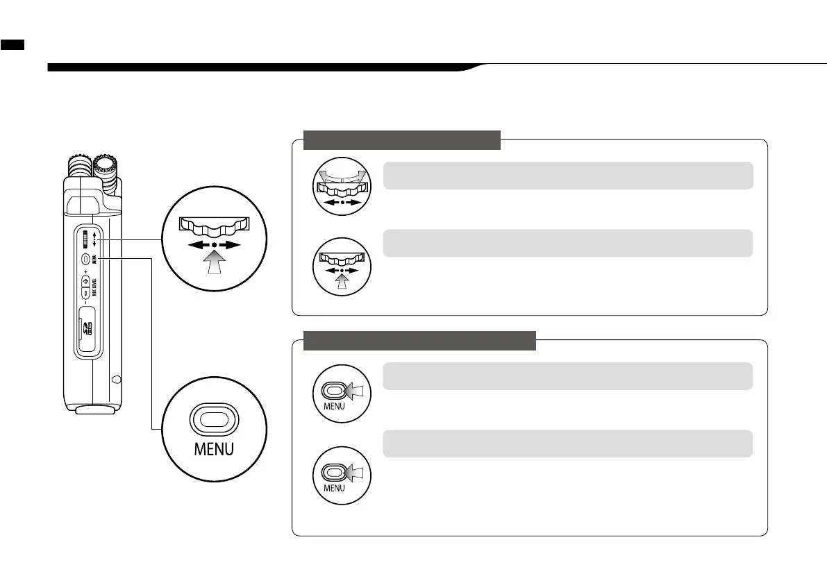 [DIAL] and [MENU] buttons are used for various settings while recording and during playback.