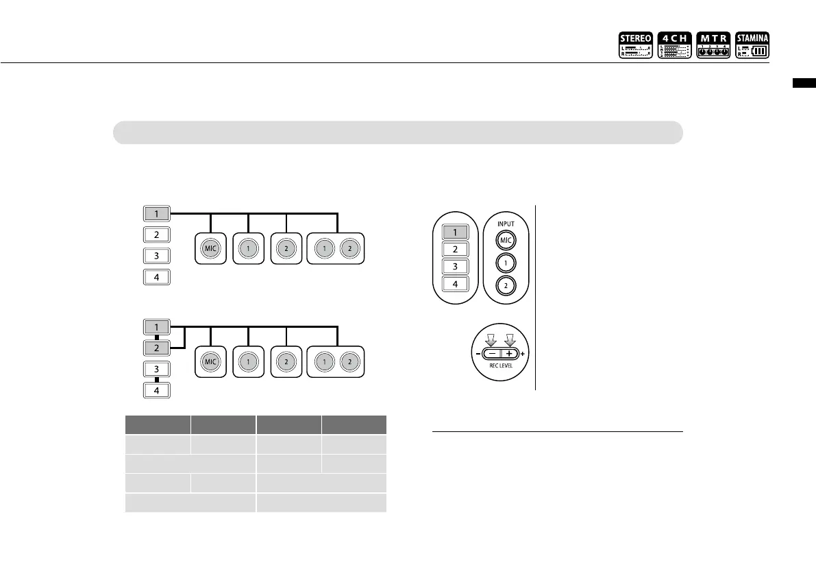 Any of tracks 1-4 can be set for mono or stereo input.