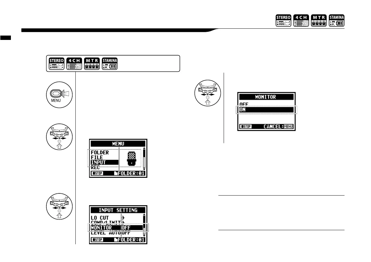 Turning on the MONITOR function allows you to monitor input signals at all times.