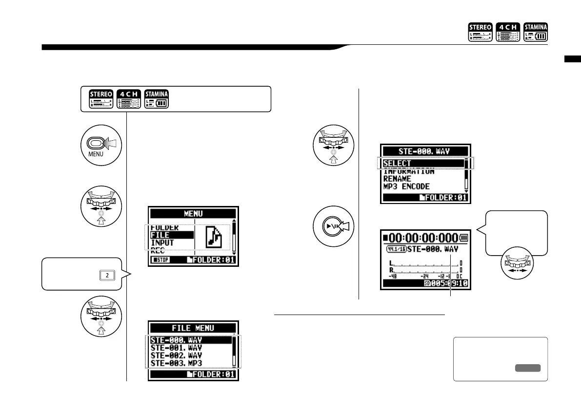 Playback : Playback files (stereo, 4ch and stamina modes)