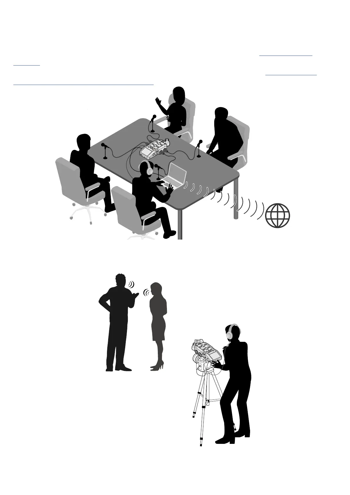 Audio can be streamed in real time using the H6essential and connected mics. (→ Using as an audio