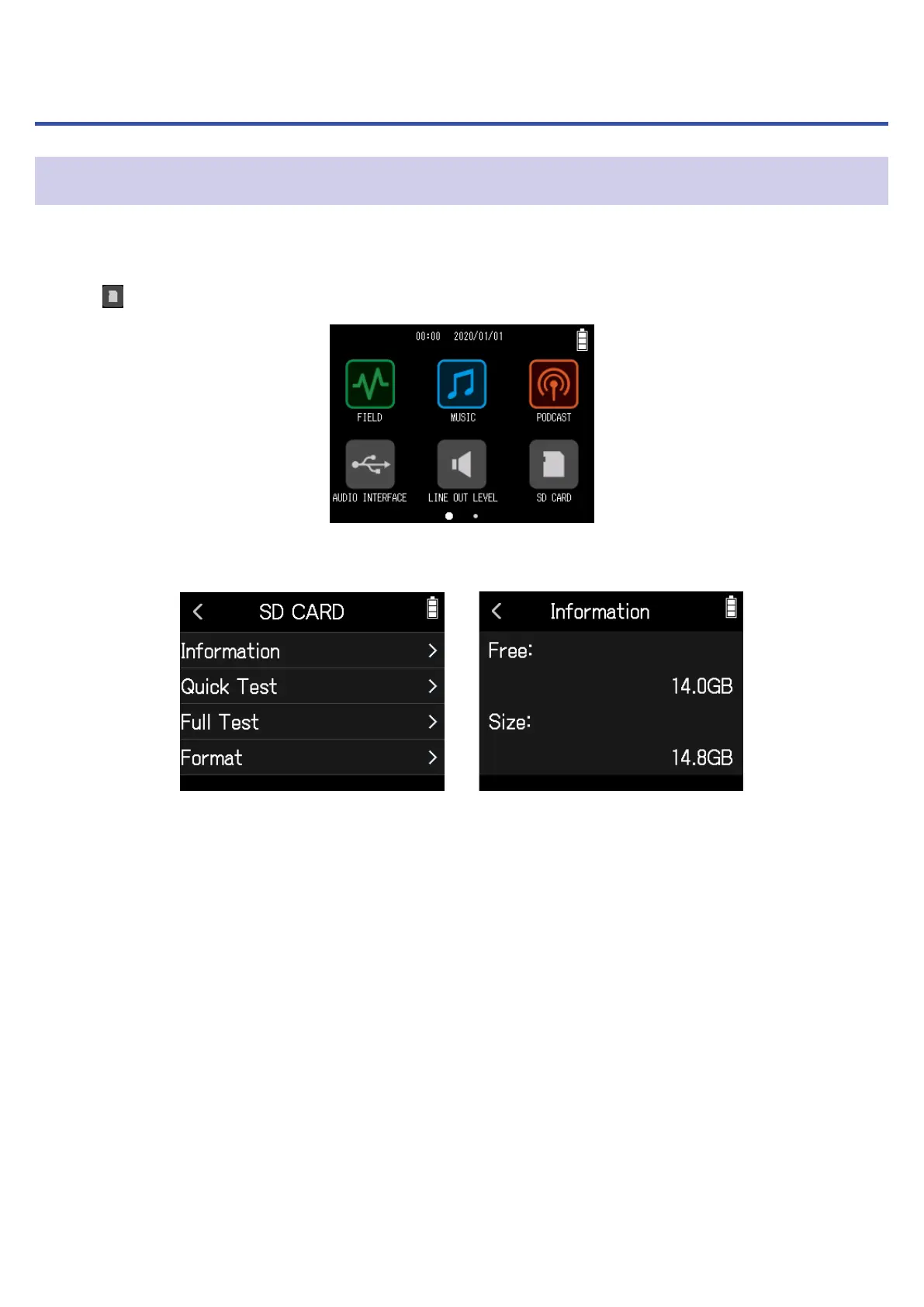 Zoom H8 - Managing SD Cards; Checking SD Card Information