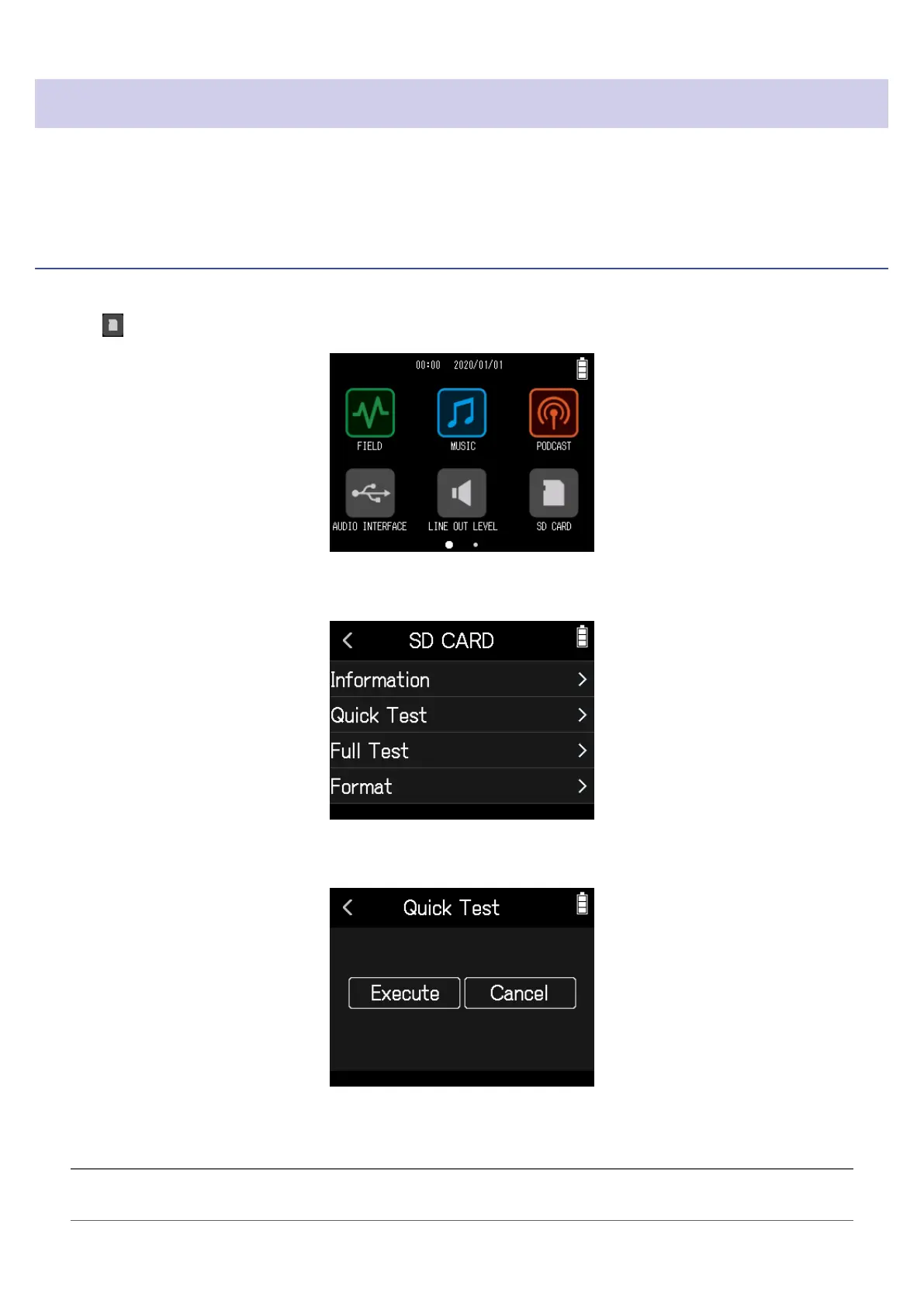 Purchased SD cards can be tested to conrm that they can be used with the H8.