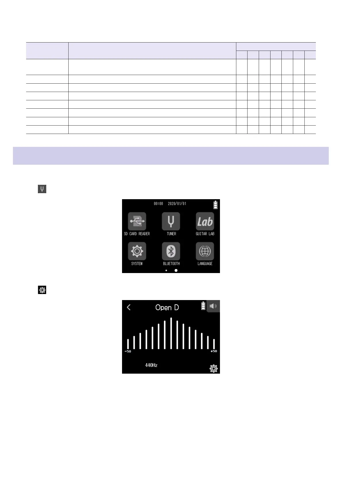 Setting the standard pitch of the tuner