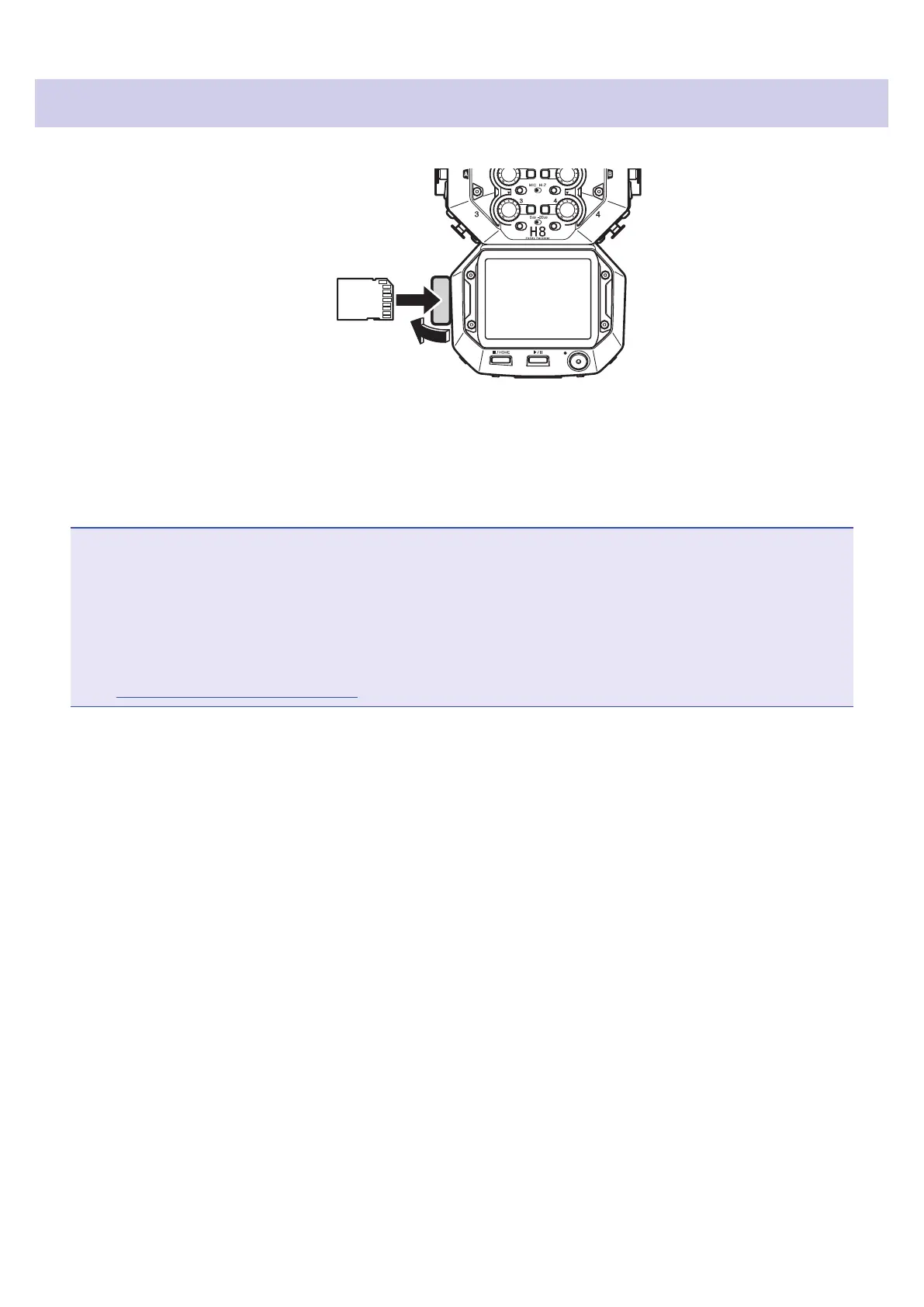 • After purchasing a new SD card, always format it using the