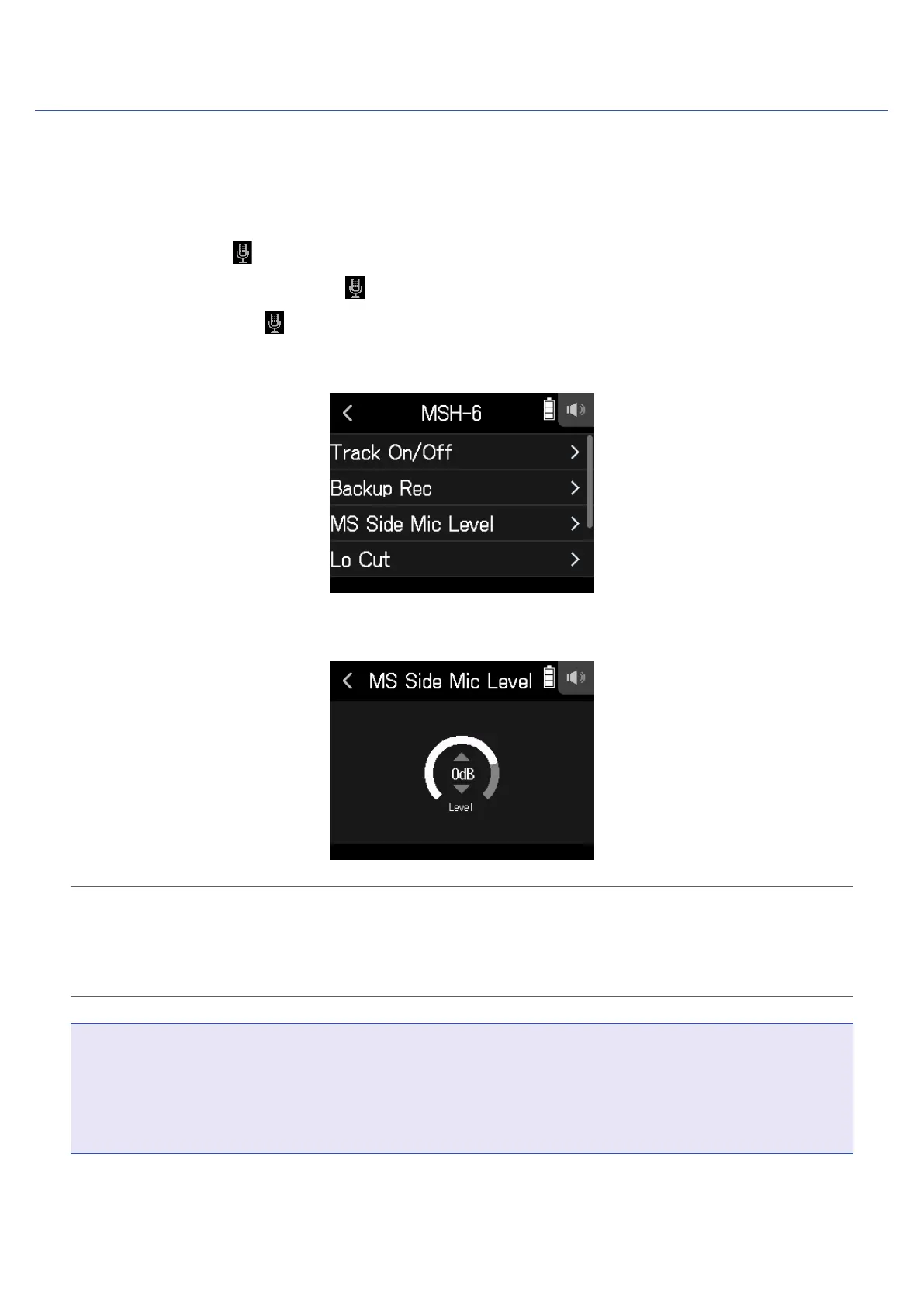 • The side mic level setting is also applied to backup recording when it is enabled.