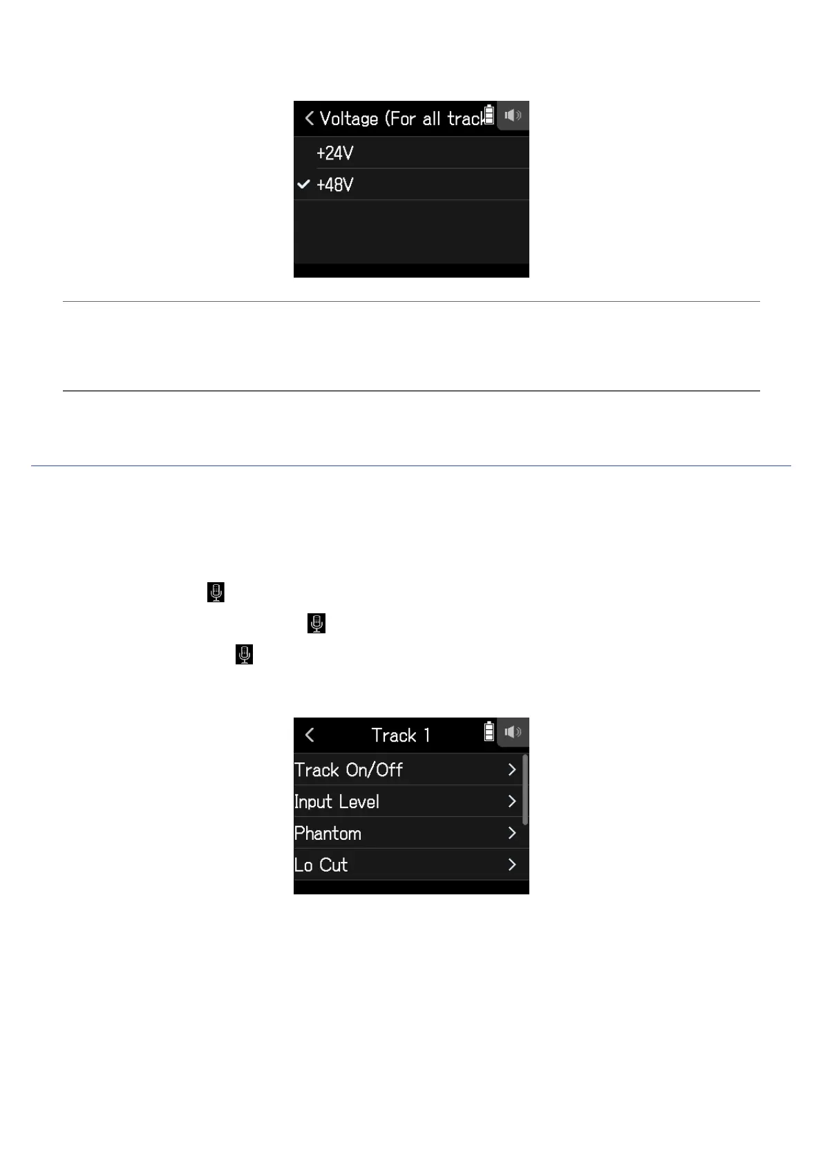 • When using mics and other equipment that can operate with voltages less than +48 V, selecting the lower volt-