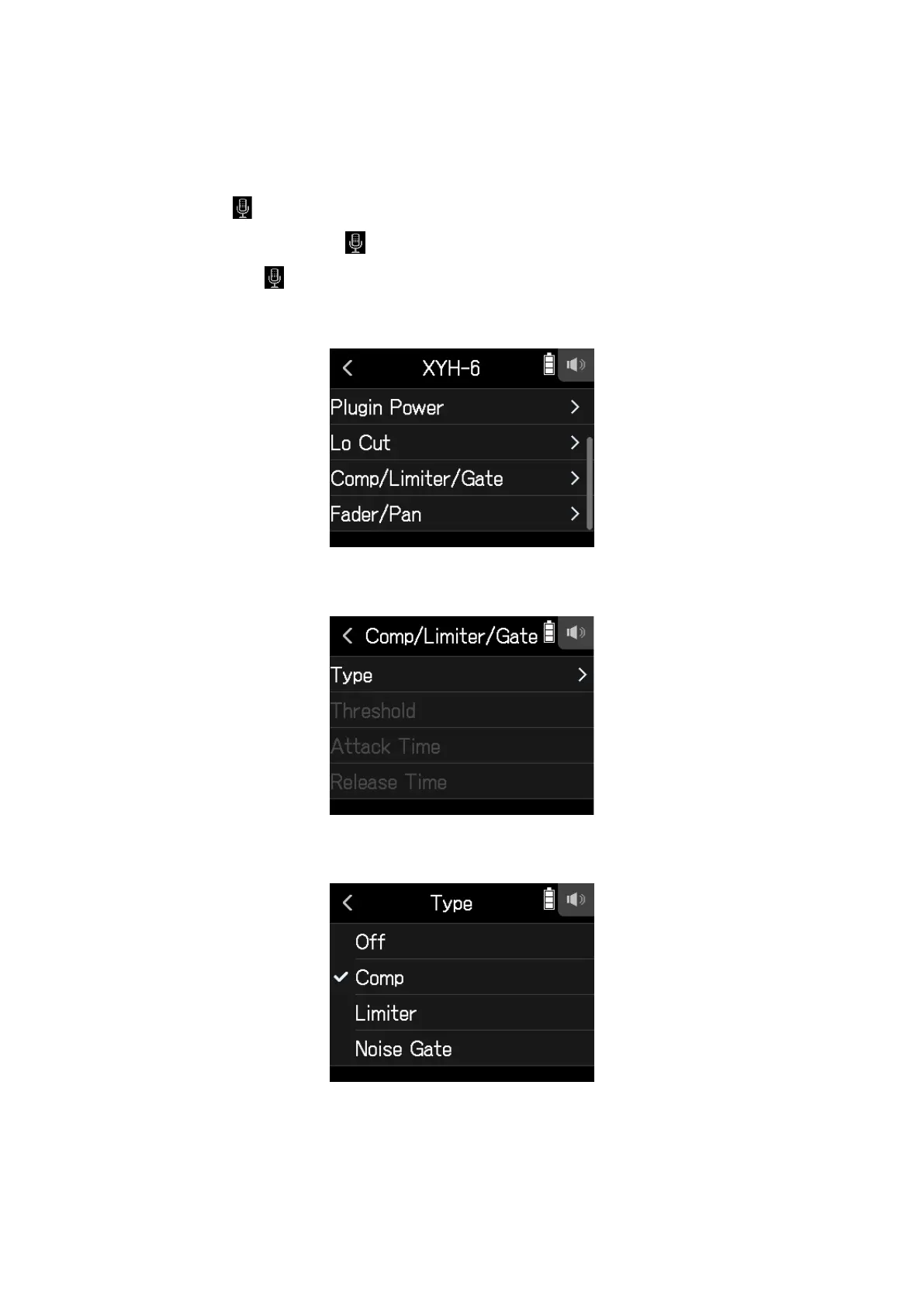 • Off: This disables the compressor, limiter and noise gate.