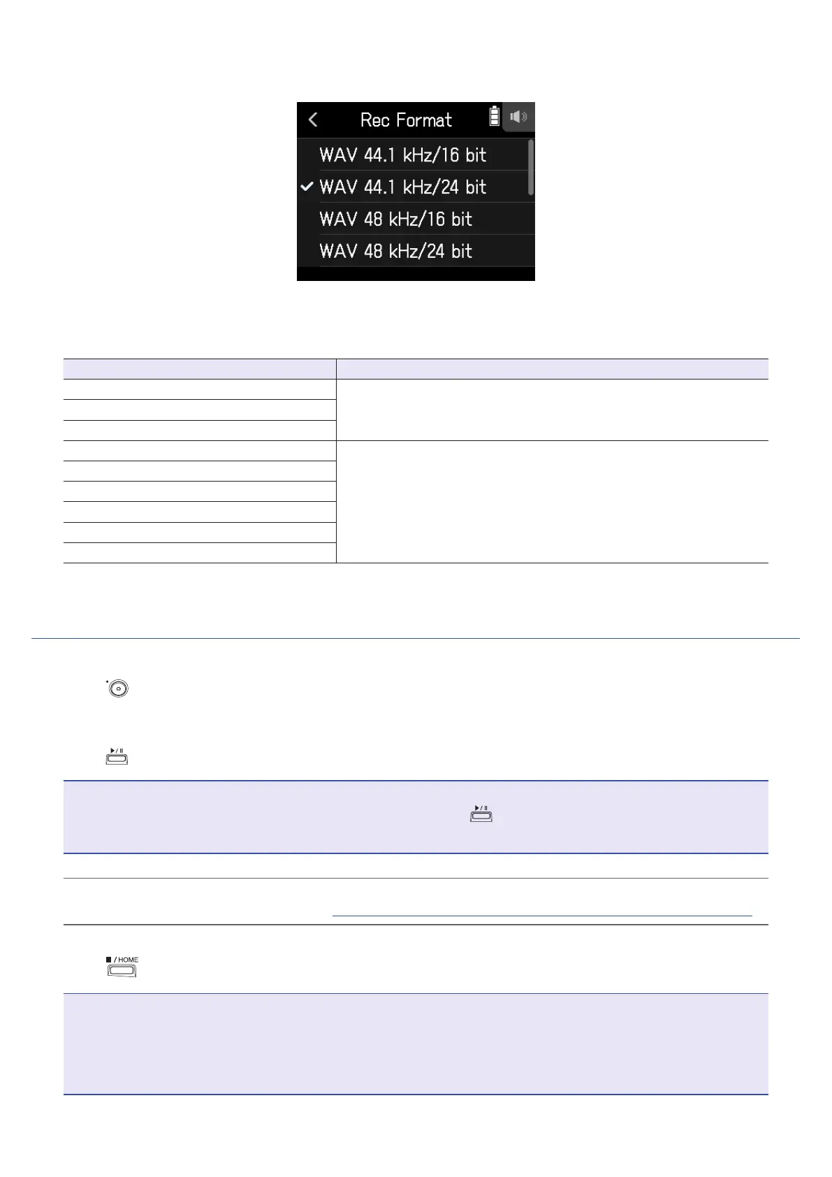 Set the recording format