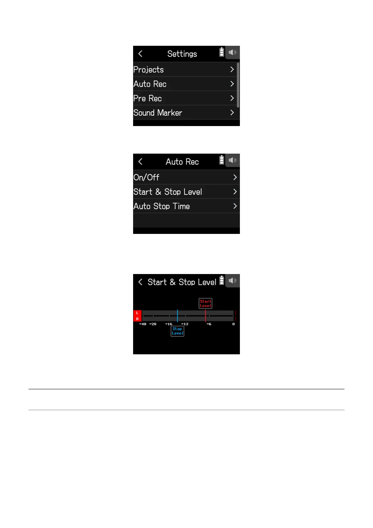 Recording will stop automatically when the input level becomes lower than the set stop level.