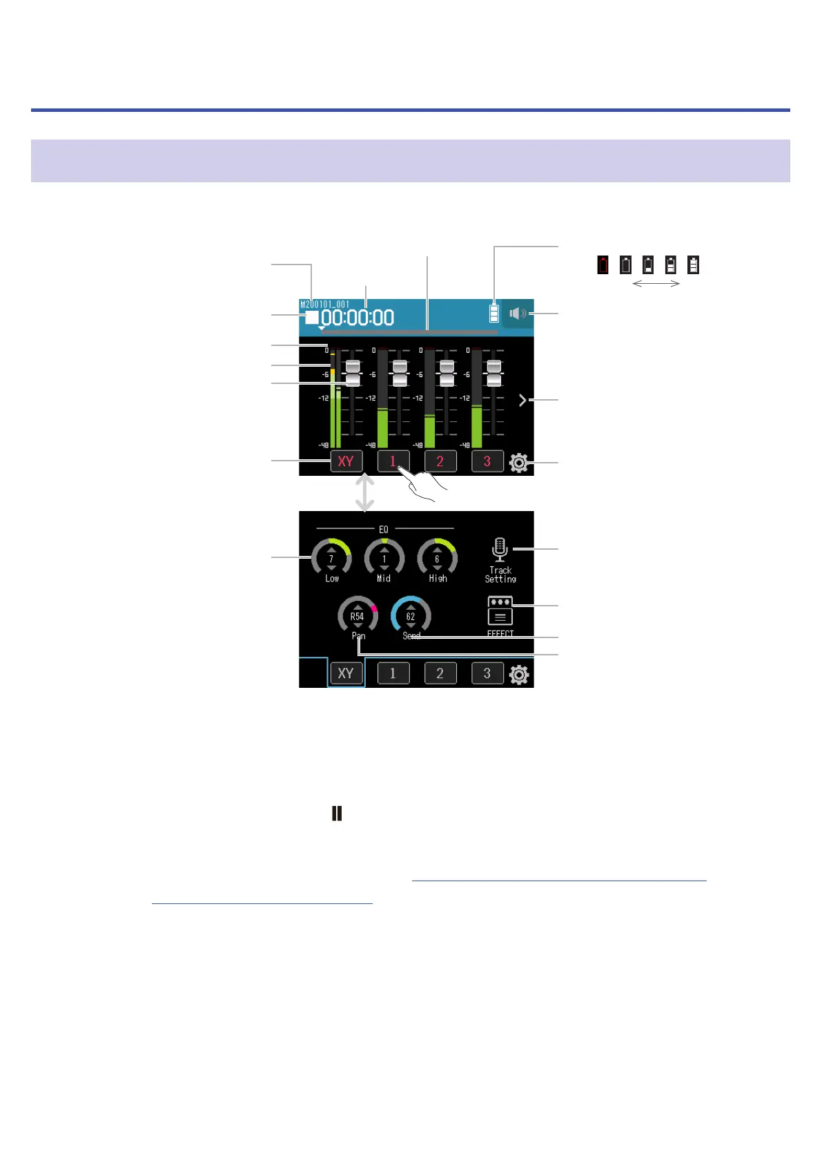 Tap these to open track channel strip screens.