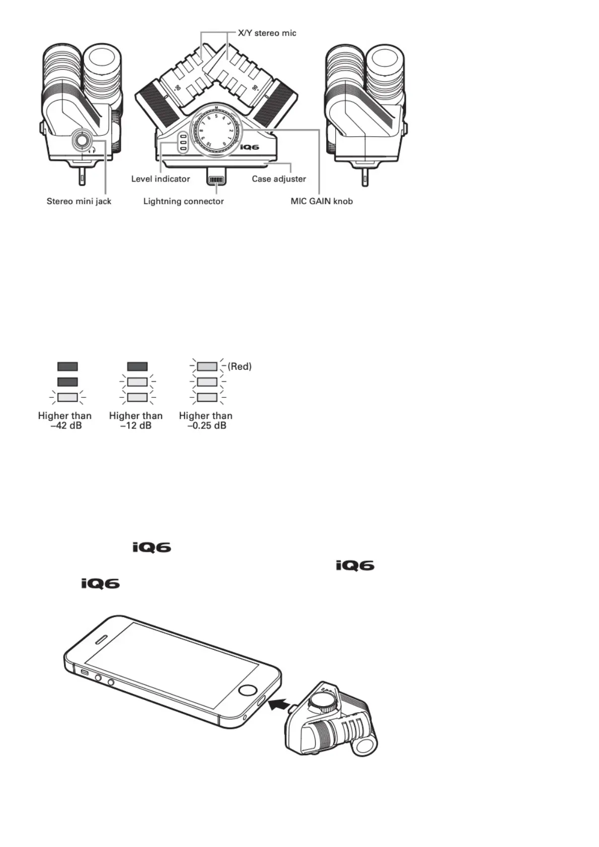 Lightning connector: Connect to the Lightning connector of the iOS device.