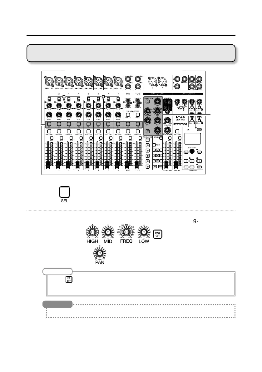 • Press to light it, turning off all equalization at once. This will bypass HIGH, MID, LOW and LOW CUT