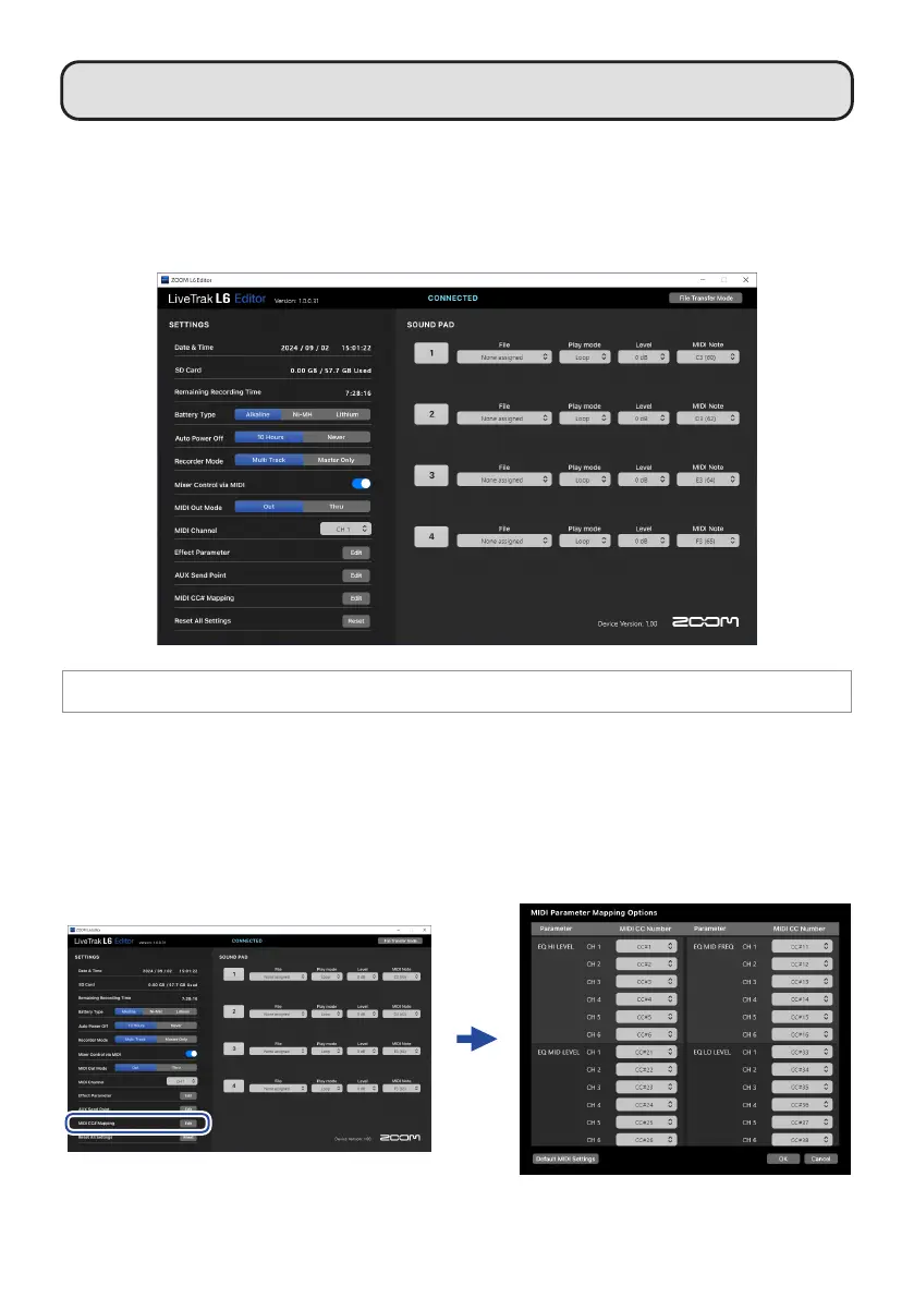 MIDI control numbers can be assigned to the L6 parameters.
