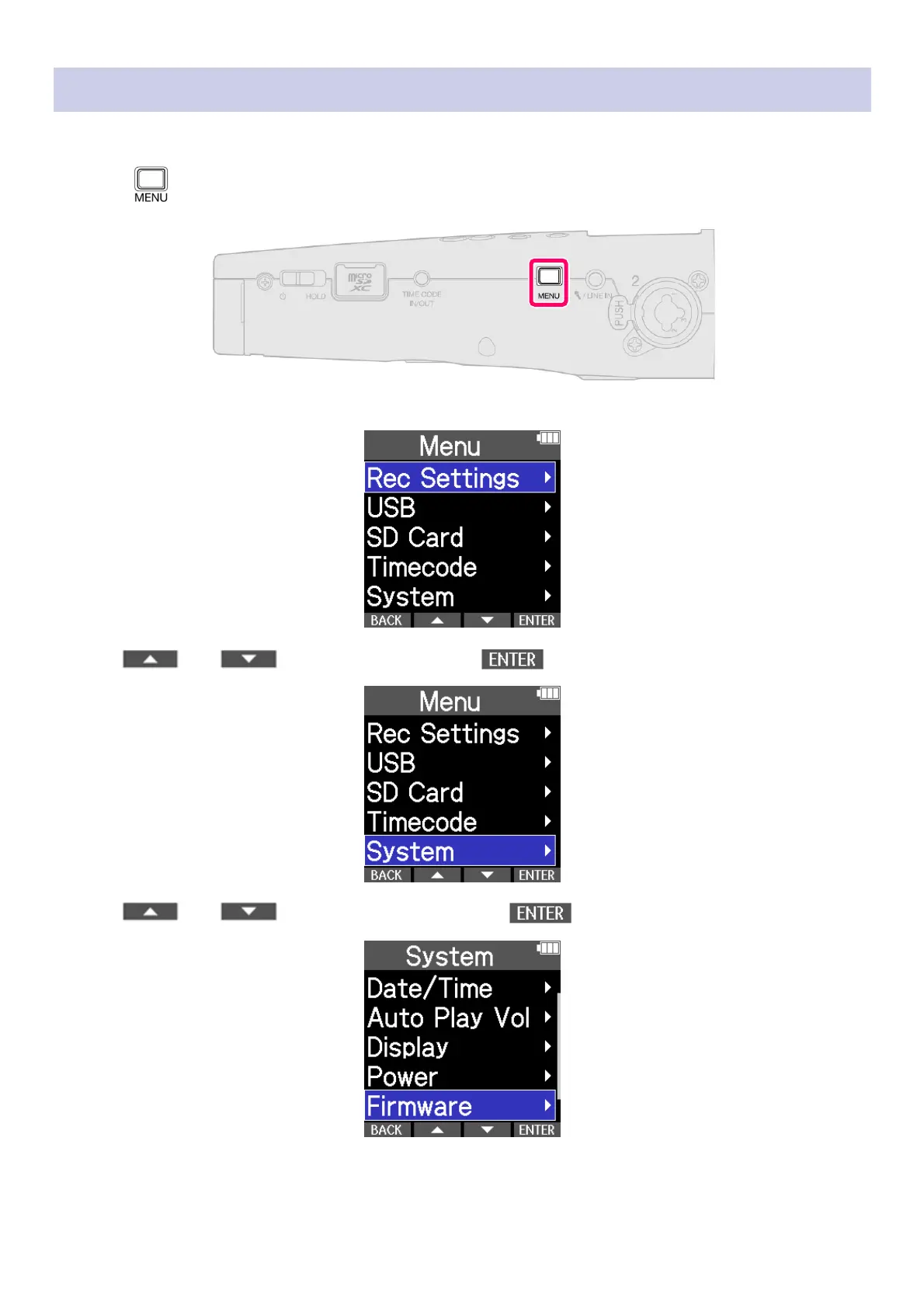 Use and to select “Firmware” and press
