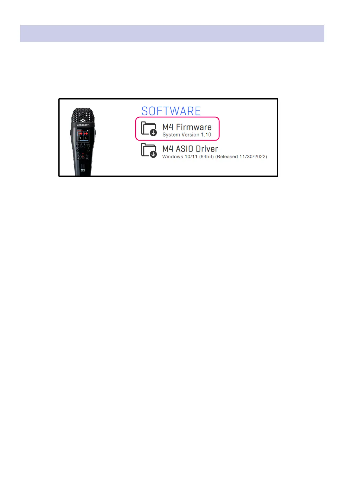 Download the ZIP file that contains the firmware update file from the M4 download page.