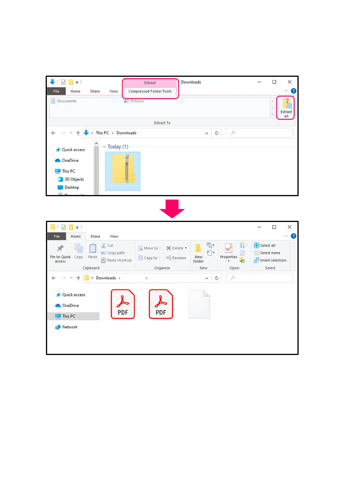 “Extract all”. This extracts the ZIP file.