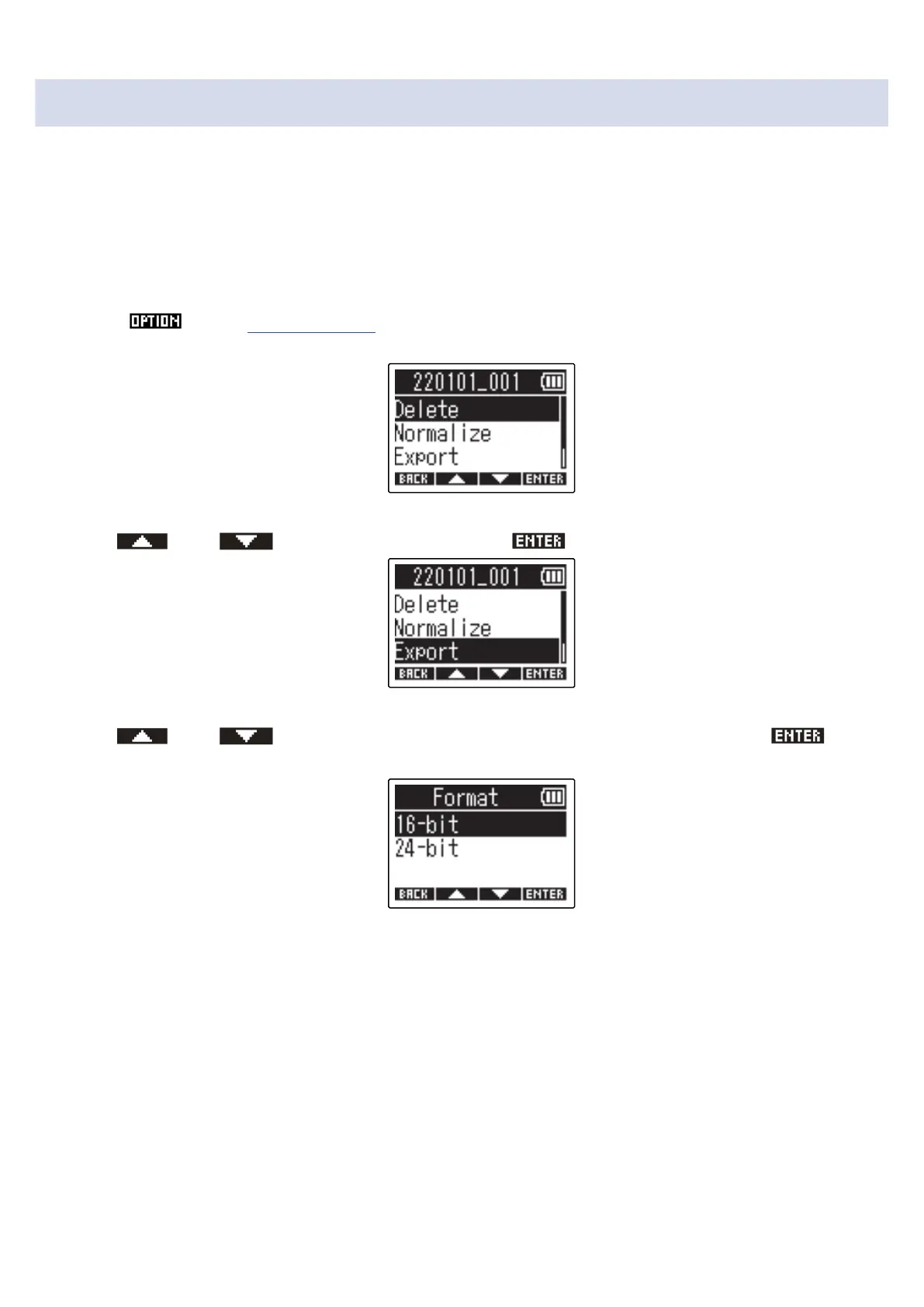 When changing the file format, normalization can also be set to be used or not. The volume of recorded