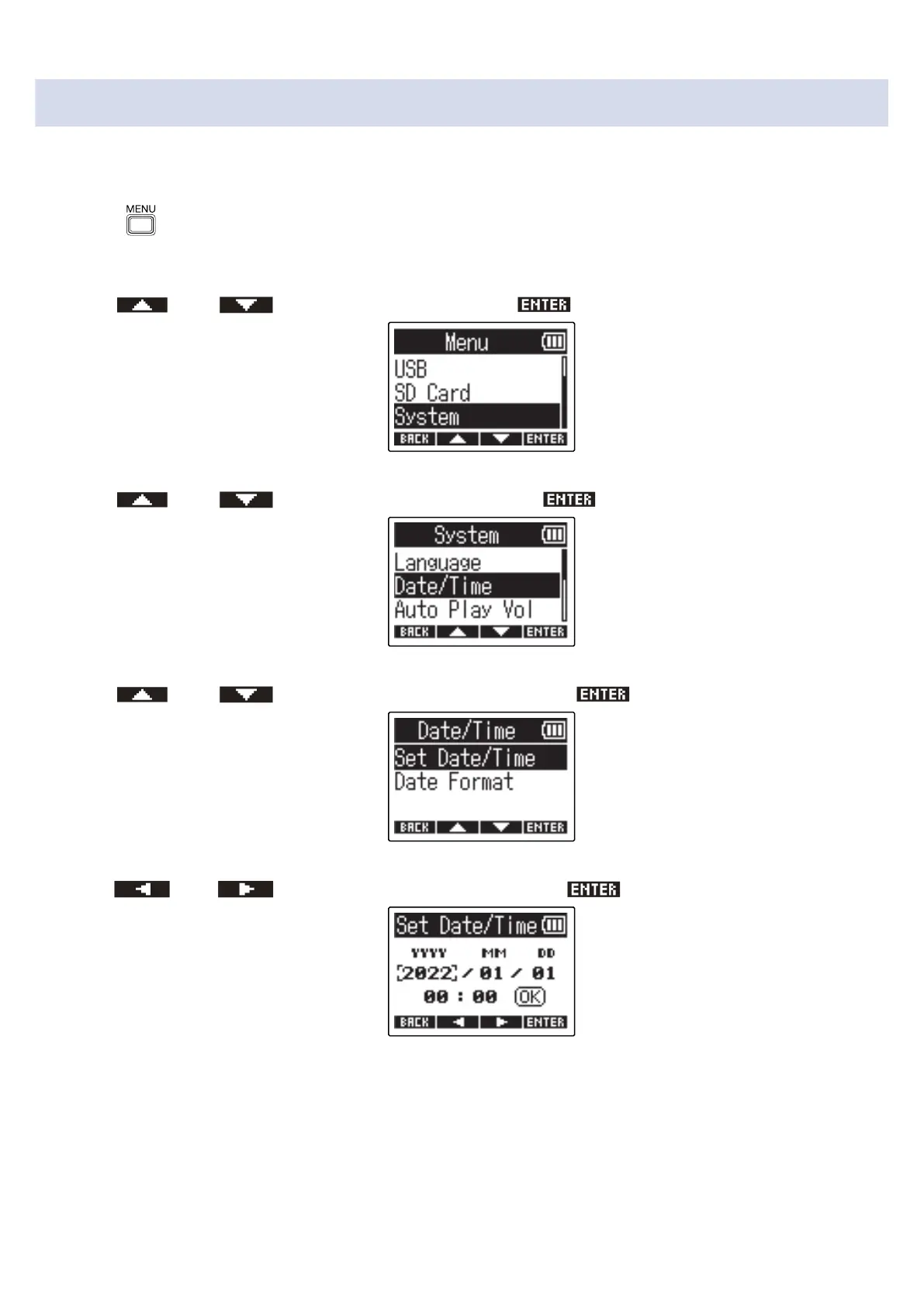 4. Use and to select “Set Date/Time ” and press to confirm.