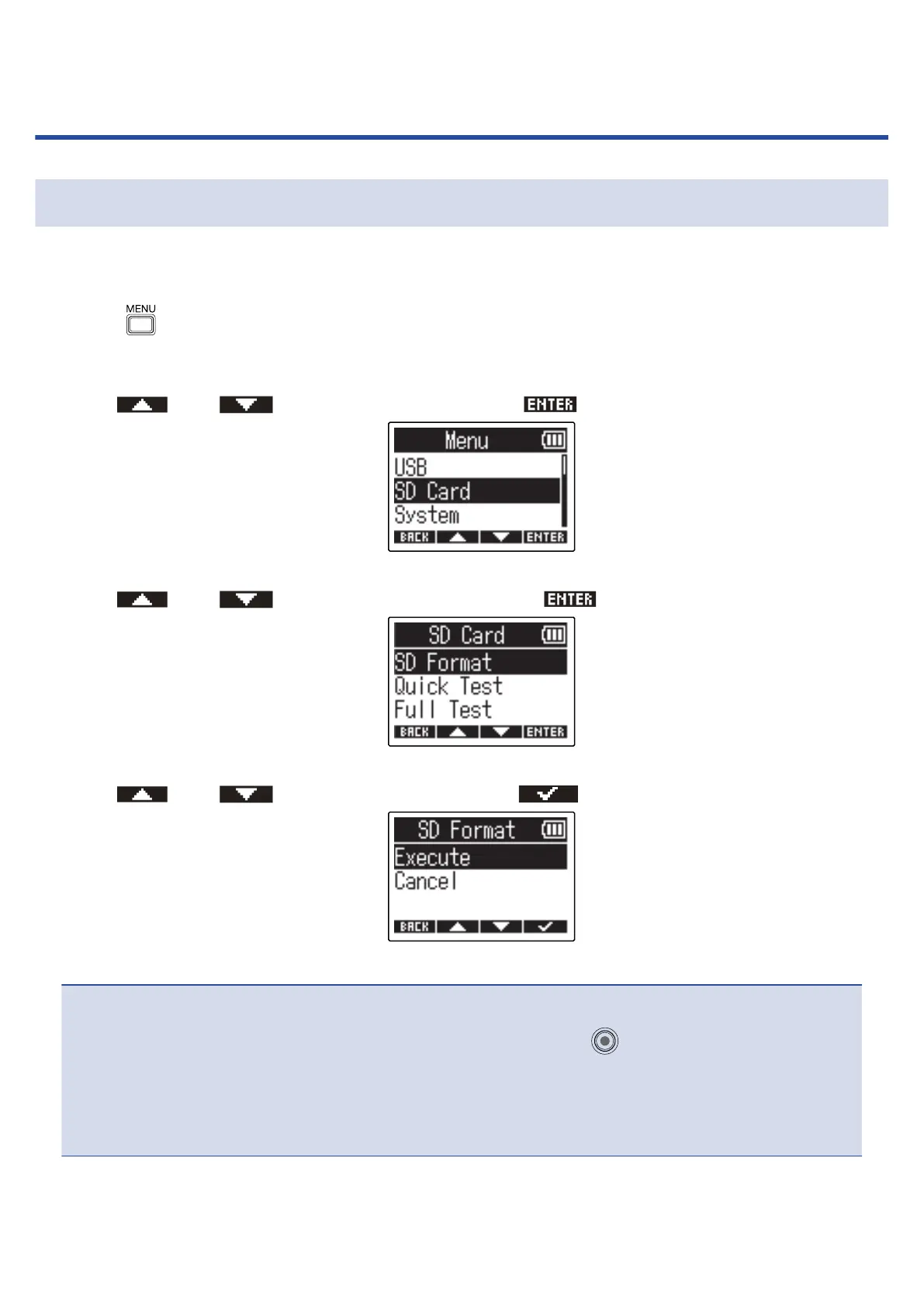 3. Use and to select “SD Format” and press to confirm.