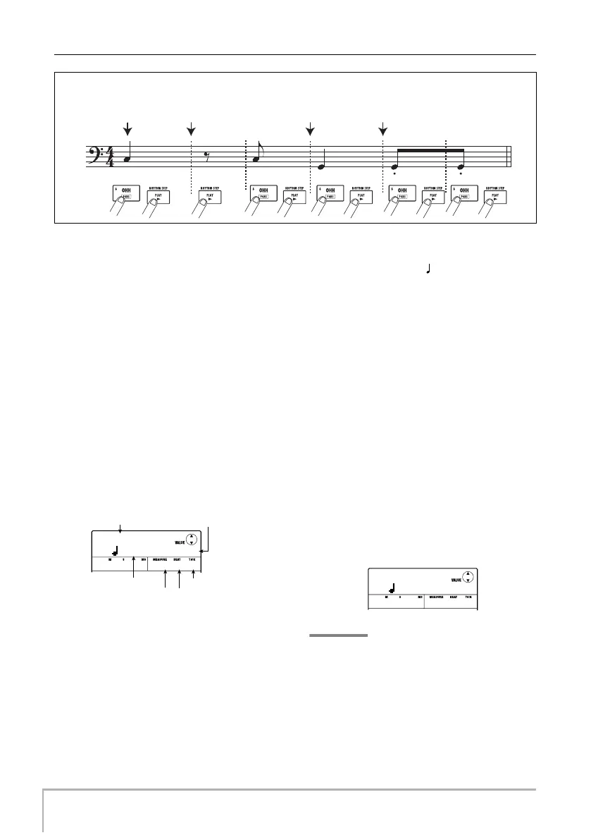 The note is recorded, and the unit advances by the step
