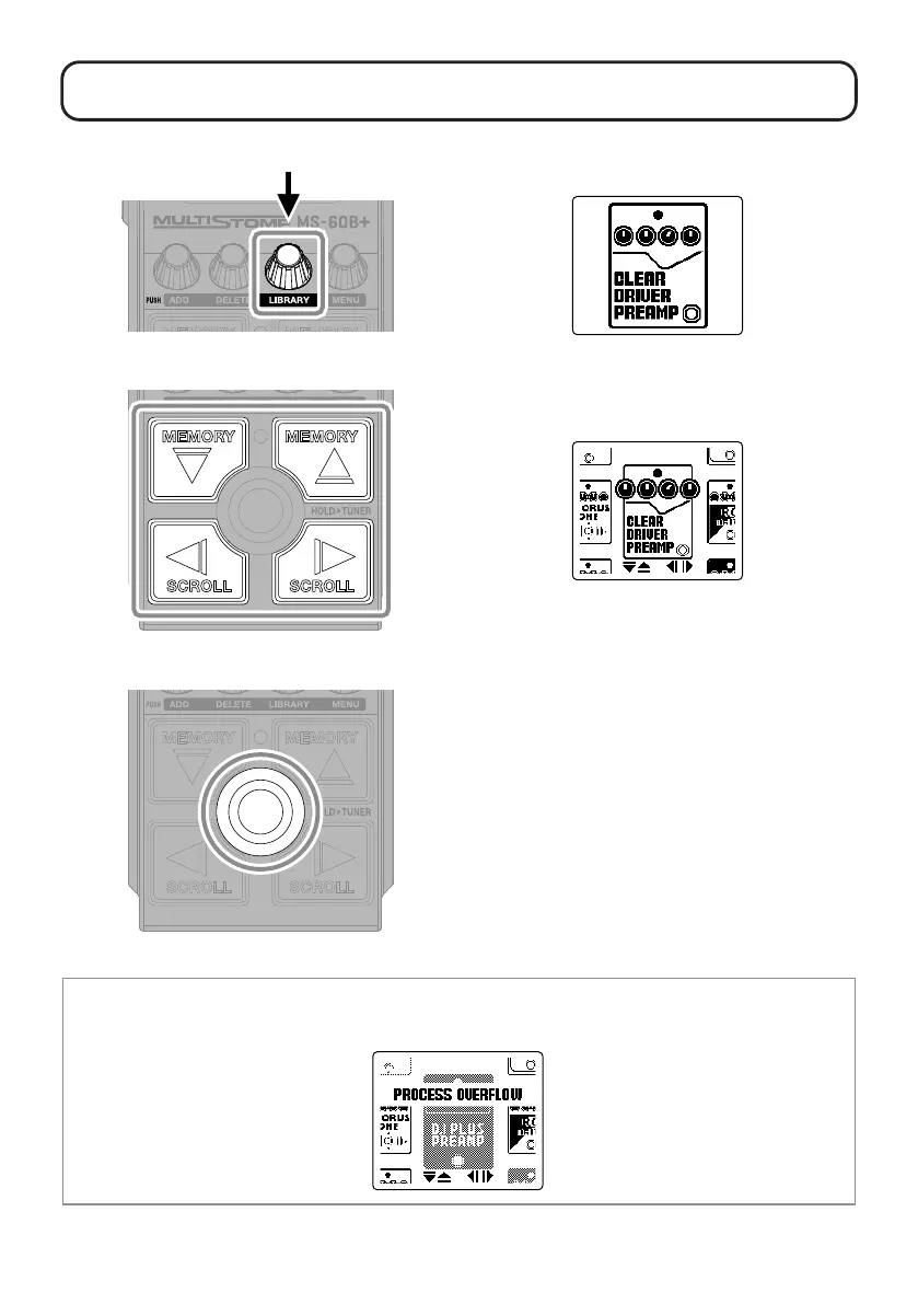 The MS-60B+ can combine up to 6 effects, but the message below will appear if the processing power is exceeded.