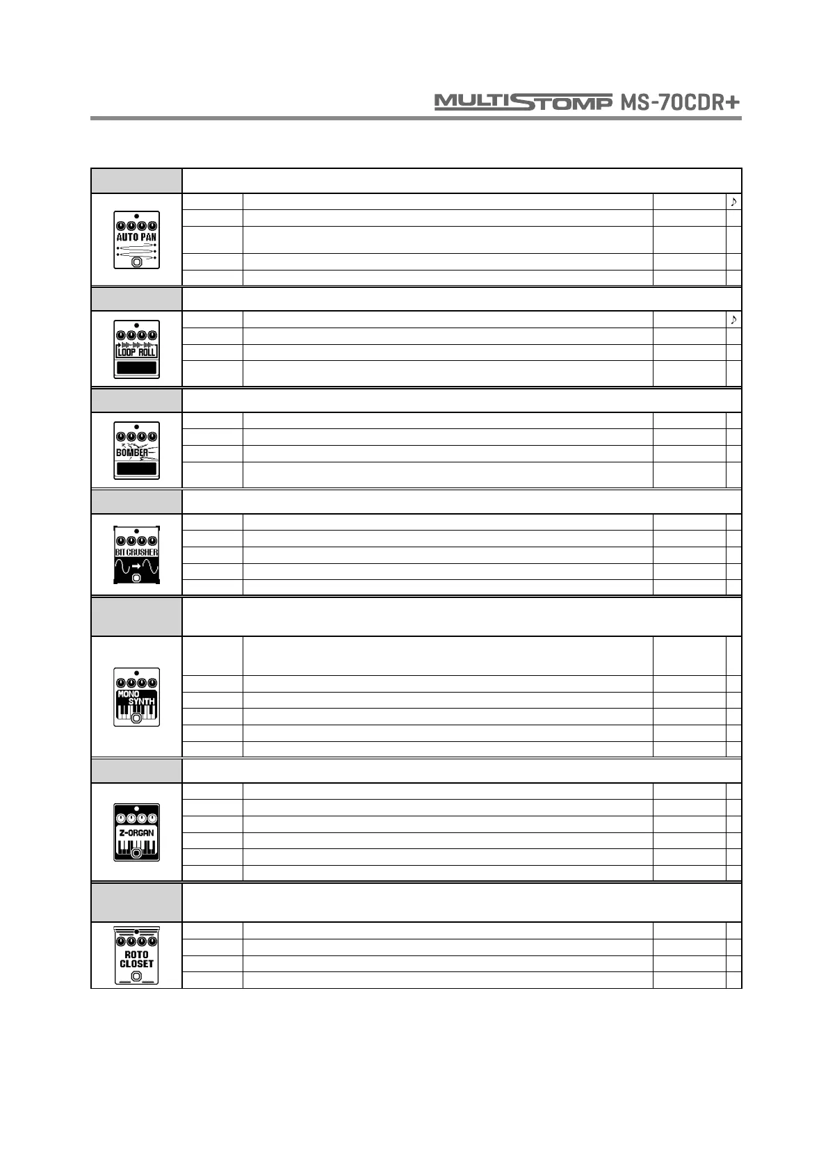 BOMBER This effect generates explosive sounds.