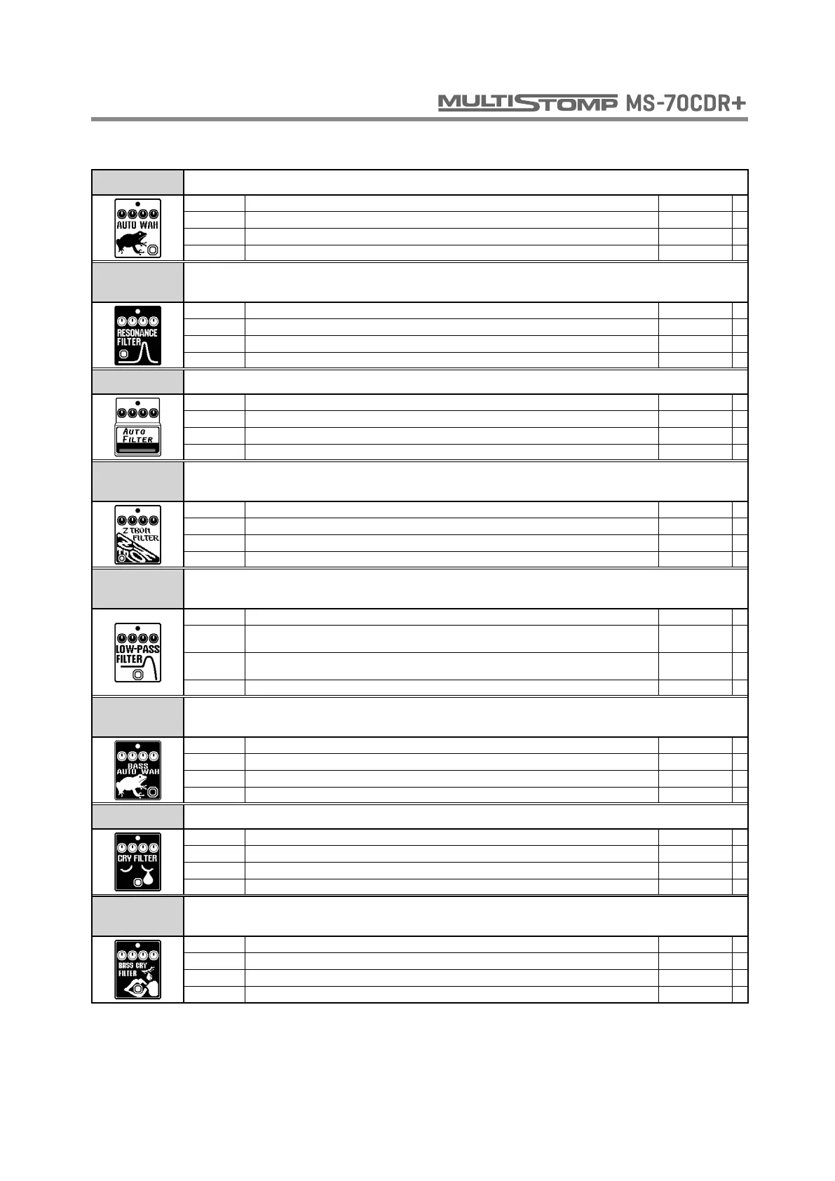 CRY FILTER This effect varies the sound like a talking modulator.