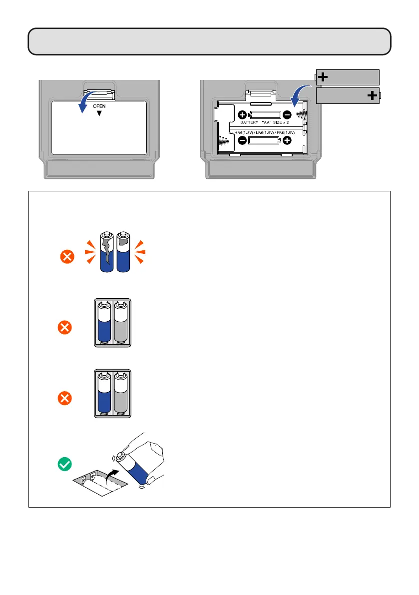 Do not use new and old batteries together.