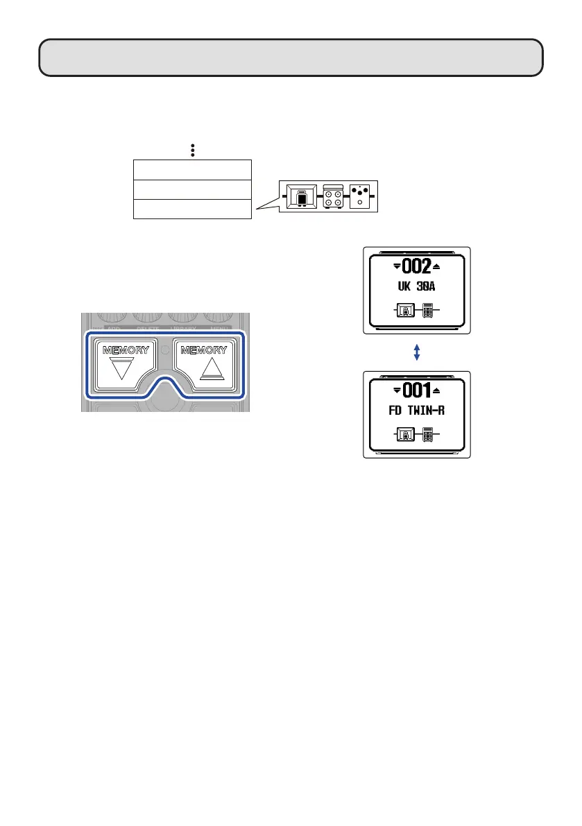 are saved and recalled in units of patch memories. Up to 3 effects can be used in a single