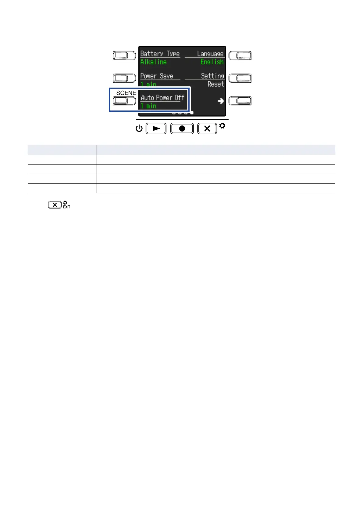 1 min The power will turn off automatically 1 minute after the last operation.