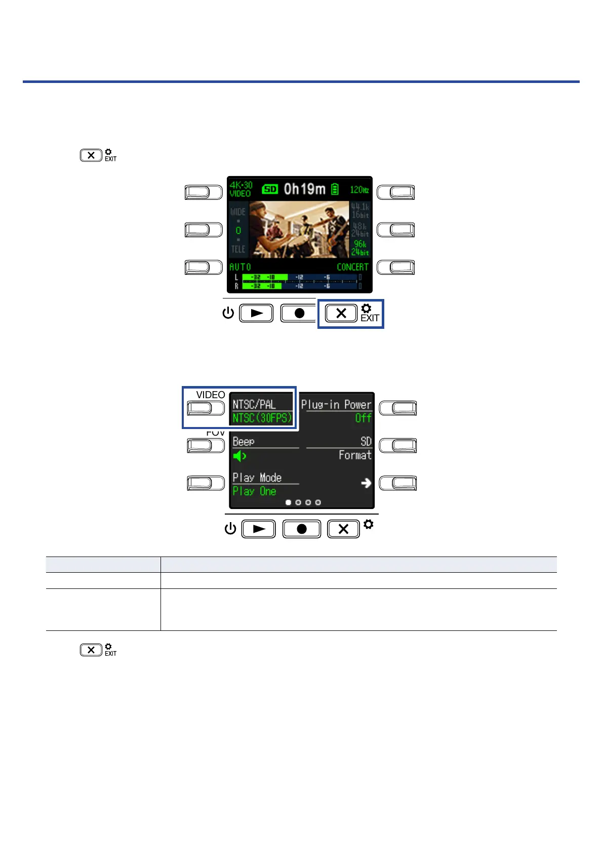 Press NTSC/PAL to set the standard frame rate.