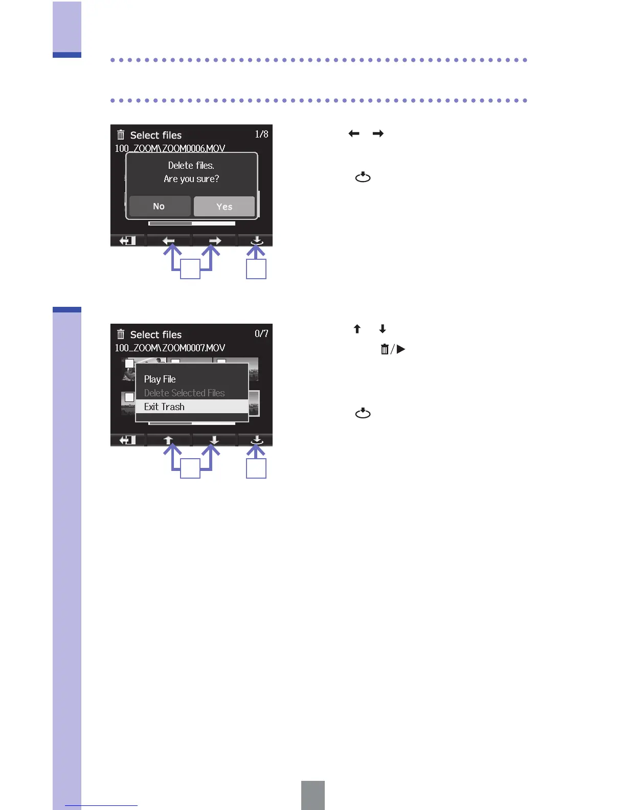 Deleting recordings (continued)
